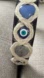 Stylish headband featuring blue and white beads with evil eye charms AND NATURAL QUARTZ . Perfect for a bohemian look.