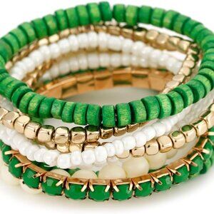 Bohemian Beads Stretch Stackable Bangle Bracelet Set Green Casual Style