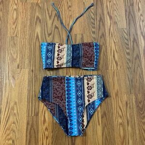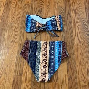 High waisted bohemian vertical patterned Stripe bikini set with padding