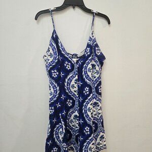 Bohemian Blue Printed Mini Dress ๐ Spaghetti Straps, Vacation Ready