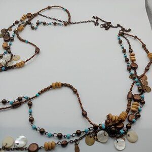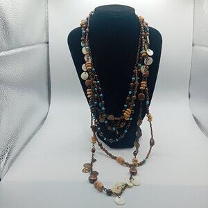 Keywords: boho, necklace, layered, beaded, statement, turquoise, wood bead, multi strand, festival women's, coin charm