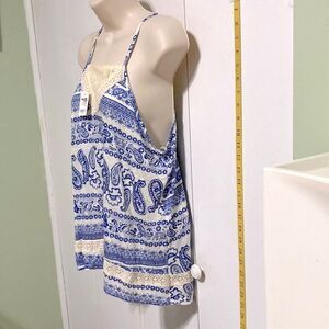 CHARLOTTE RUSSE Boho paisley and floral white and blue design.