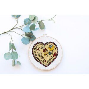 Bohemian Boho Yellow Valentine Heart Counted Cross Stitch Kit