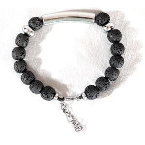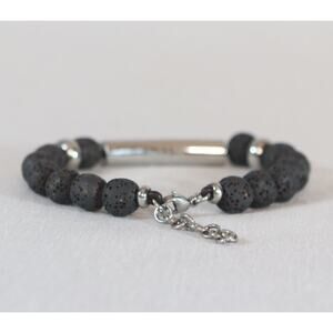 Bohemian Bracelet Silver Tone Chain Lava Stone Black Beads Lobster Claw Clasp