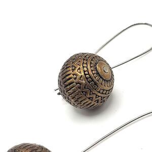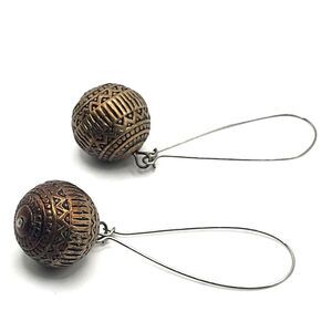 Bohemian Brass Ball Long French Hook Dangle Drop Earrings 3in Materials: brass bohemian ball Length: 3in Clasp: french wire hook Signed? no Excellent vintage condition - worn