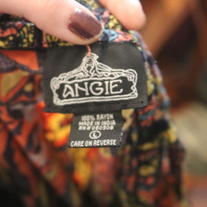 Laid Back Bohemian Cami Tank Top, Large, with metal stud embellishments as well as orange threaded embroidery design up at the top black area of the top. With Bright and unique multi-colored print, you will turn heads as you walk by in this cami by Angie.