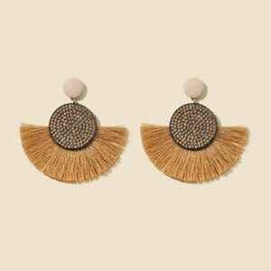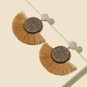 Bohemian Brown Rhinestone Decor Tassel Drop Earrings NWT Elegant Chic