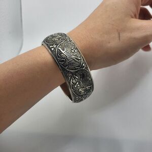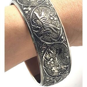 Bohemian Chunky Cheetah and Tiger Motif Bangle Bracelet Stainless Steel 1in wide