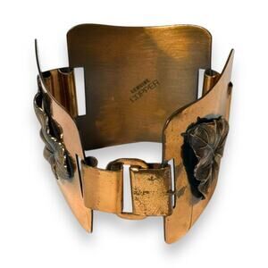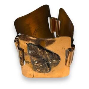 Bohemian Copper Bracelet Womens Tri-Square Leaf Haute Relief Hippie Boho 8 in