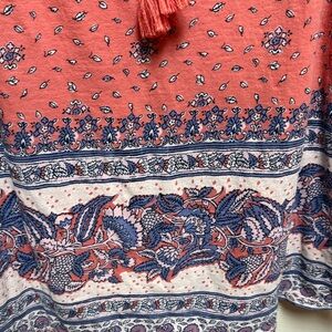 Embrace a bohemian vibe with this stylish coral and blue top. Perfect for casual outings, it features intricate patterns and a comfortable fit.(C1)