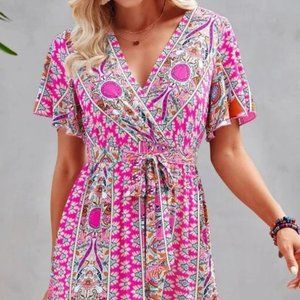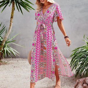 Bohemian Cottagecore Butterfly Sleeve Maxi Dress - PINK