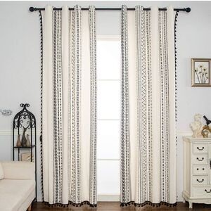 vctops Bohemian Cotton Linen Window Curtain Panel with Tassels Geometric Print Farmhouse Grommet Top Room Darkening Curtain Panel for Bedroom Living Room, 1 Piece (59"x87",Black