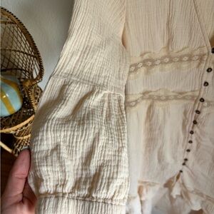 Bohemian Cream Listicle Button-up midi dress with Lace details in size medium
