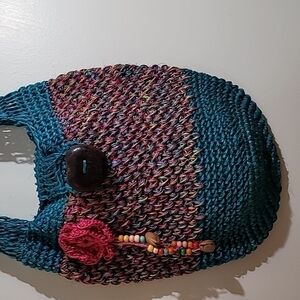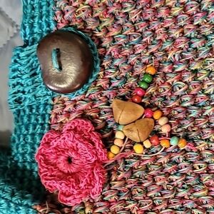 This bag is absolutely adorable, straw, colorful Crochet with beads.