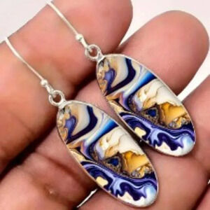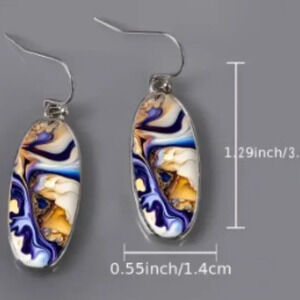 These vibrant Bohemian dangle earrings feature a stunning colorful marble pattern, crafted from durable zinc alloy with a silvery finish.