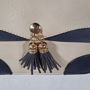 Bohemian Dark Navy Blue Tan Urban Energy Cross Body Faux Leather Purse Classic