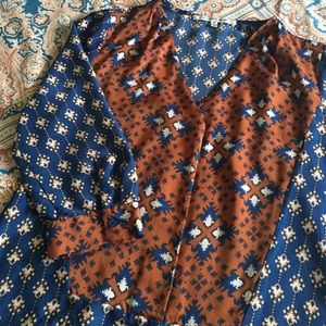 Blue and orange bohemian satin dress. Loose fitted and hit right above the knees. (I'm 5'6")