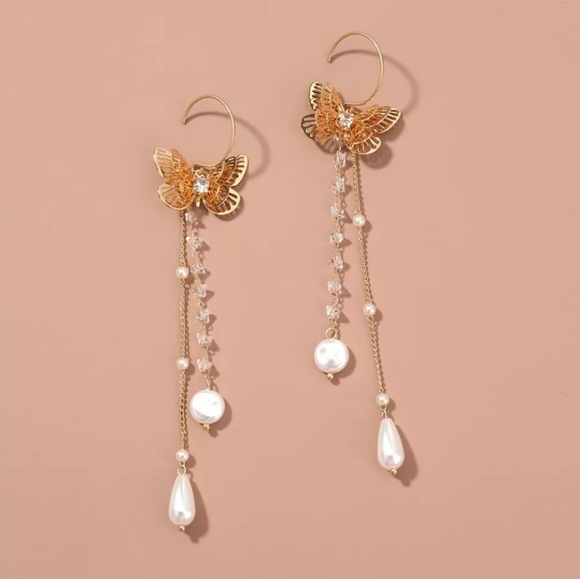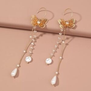 Dainty Bohemian Earring Holiday Summer 18K Gold plate Hoop 925 Silver Stud Pearl Flower Earrings Jewelry Women NWOT