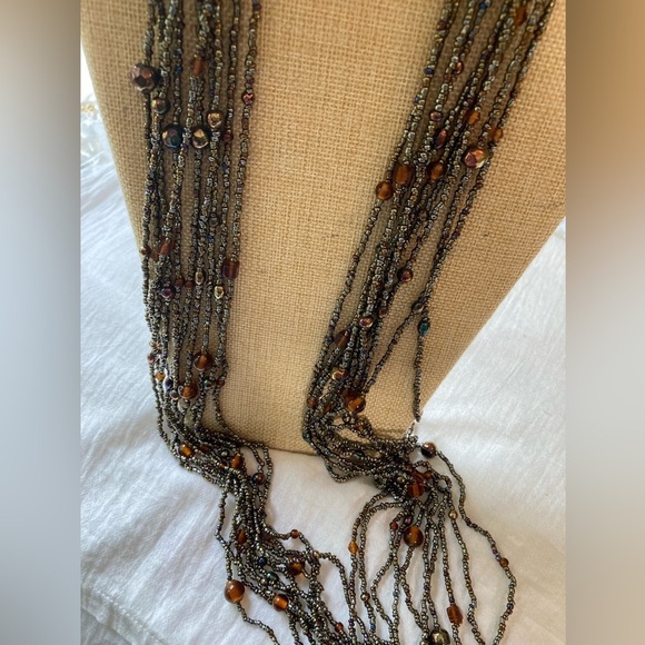 Bohemian Earth Tone Multi Strands Glass Seed Beads Necklace
