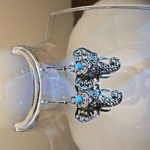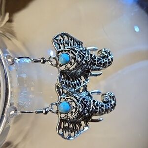 Bohemian Elephant Dangle Earrings Turquoise Accents, Zinc Alloy Iron Ear Hooks