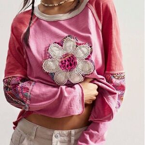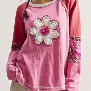 NEW! Bohemela Autumn/Winter BOHO Vacation Casual Patchwork Long Sleeve Loose Washed Women Graphic T-Shirt Flower Tops For Women. Size is a Medium. This is an oversized shirt. Front of shirt hot pink and back is a rust color. Patchwork and color block long sleeves. Super cute and trendy!!