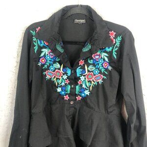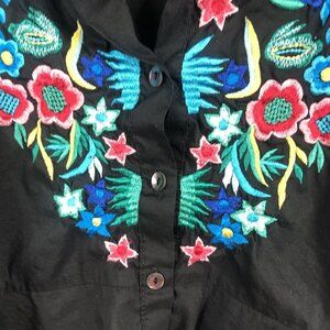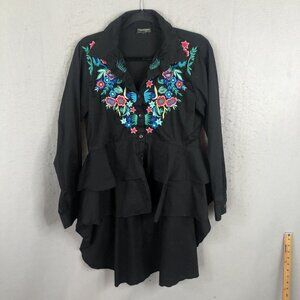 Bohemian Embroidery Top Womens Large Black Whimsigoth Victorian Feminine Artsy