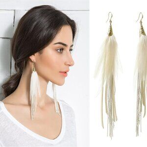 Style: National Wind, bohemian style, theme party, party, wedding, Feather Earrings, Women Bohemian Natural Jewelry, White Wedding Tassel Accessories, Elegant earring makes you the eye-catching center Length 12-13 cm / 4.75 "-5.11", the feathers are not the same length, ear hook length 1.2 cm / 0.47 inch