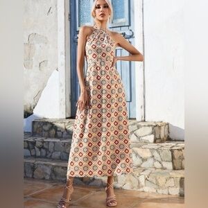 Bohemian Floral Print Backless Halter Top Maxi Sundress