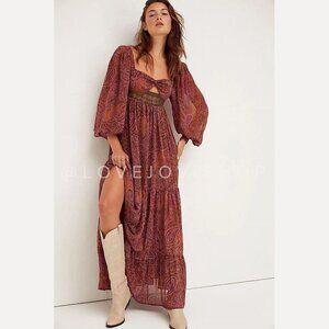 Bohemian | Free People Corset Maxi Dress | Western Heritage Paisley in Rust Plum