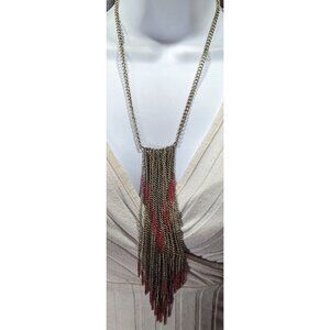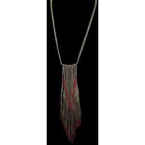 Bohemian Fringe Chain Necklace Red And Silver Tone
