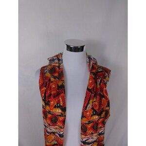 Bohemian Fringe Hooded Vest 1X By Llave Red & Orange Geometric Pattern