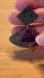 These handcrafted artistic earrings feature a striking geometric design with vibrant purple and teal tones. Crafted with layered materials, they showcase a textured metallic surface and are adorned with dark tassels for a bohemian flair. Perfect for adding a unique touch to any ensemble. 2” long and 1 1/4” wide. Item number E7610.
