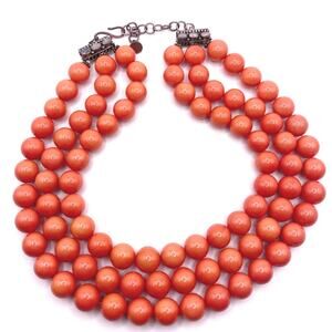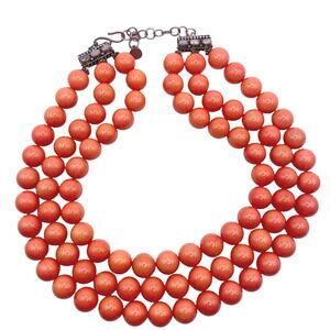 Three Strands Bohemian Glass in Orange Coral Tone Coated with Sterling and moonstone closure Midcentury