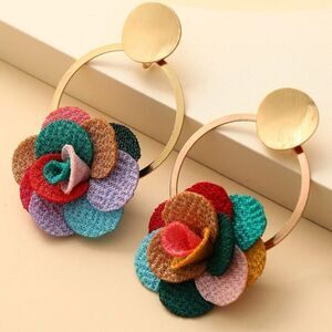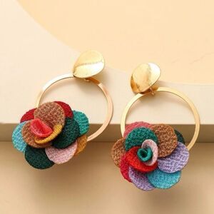 ✨🆕✨Bohemian Gold Multicolored Flower & Round Decor Drop Earrings✨