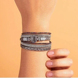 Bohemian Gray Faux Leather Layered Wrap Bracelet