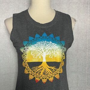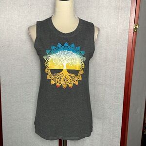 Beautiful, colorful and bright design in the center. This tank top is great for yoga, athletics, and casual wear. Great condition!