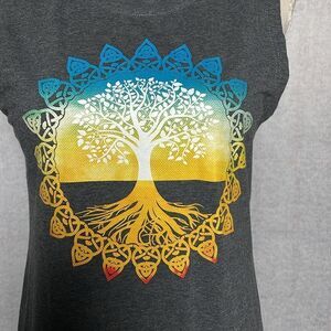 Bohemian Grey Sleeveless Tank w/Mandala & Tree of Life Design (Medium)