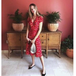 Bohemian Gypsy red floral print Cottagecore wrap dress