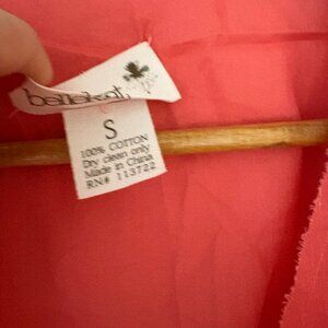 This blouse is handmade, one-of-a-kind, cotton gauze, open front with a floral embellishment, snap closure and loose fitting. The shirt is a coral, orange, pinkish color. Perfect with low waisted jeans! Like new- Y2K!