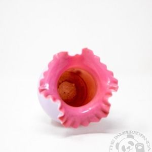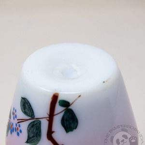 Bohemian Harrach Hand Enameled Bird & Flowers White Cased Pink Ruffled Vase
