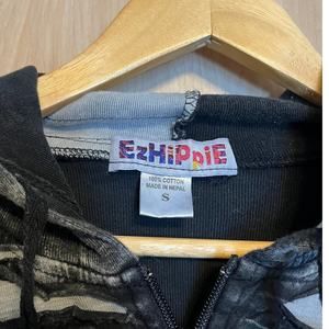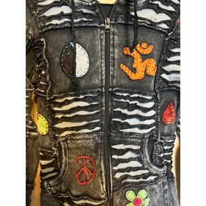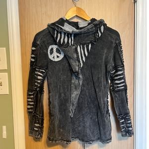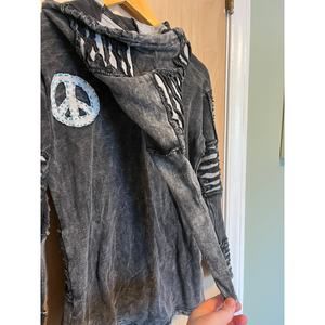 Bohemian Hippie Sweatshirt Fairy Y2K Elf Hood Embroidered Patchwork Peace Sign
