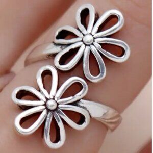 Bohemian Hippie Vintage Flower Open Ring – Adjustable to Fit Most Fingers