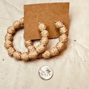 Bohemian hoops w/post Raffia Ratten tan earrings. Estate piece. EUC.