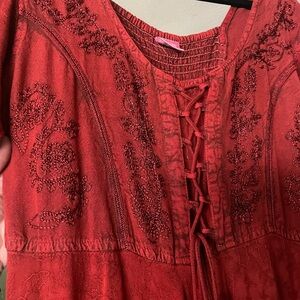 Bohemian / Indian Style Lace-Up Red Maxi Dress