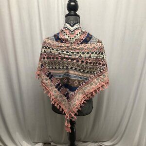 Bohemian Inspired Pink Blue Geometric Patterned Scarf Tassels Square 43x43in