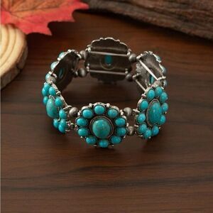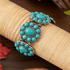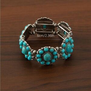 Bohemian Inspired, Vintage Style Elastic Turquoise Beaded Bracelet