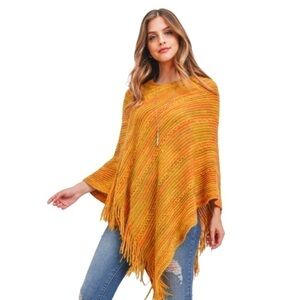 Bohemian Knitted Poncho Multi Color NWT One Size