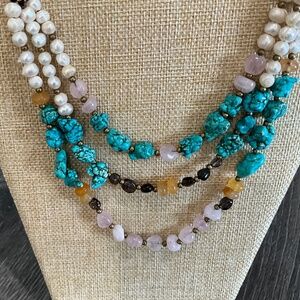 Bohemian “ Laurel “ Boho Adjustable 3 Layer Chain Link Necklace with Beads R1B