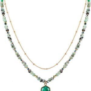 BEADED NECKLACE WITH PENDANT The elegant and unique layered statement necklace consists of a faceted beads necklace with a natural stone beads charm and a gold chain choker necklace. The adorable beaded necklace is a sophisticated choice for the widest range of occasions, makes you more charming and stands out in the crowd, and gives you a better wearing experience.