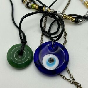 Bohemian Layered Chunky 5-Piece Necklace Set with Gemstone & Evil Eye Pendants